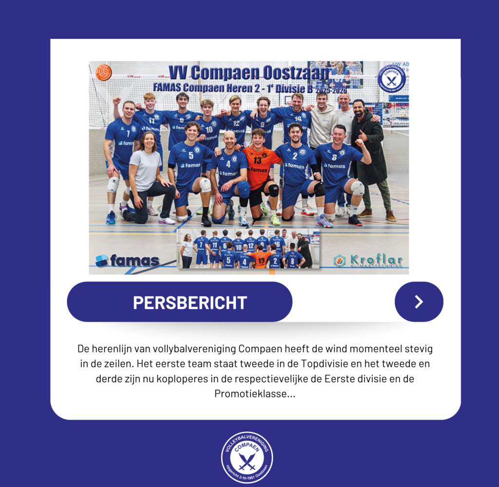 Veelzeggend was de blijdschap bij Pegasus na het laatste punt. Aan de andere kant van het net duurde het even voordat bij Compaen Heren 1 de vreugde van de overwinning met 3-1 binnendrong. De onaantastbare koploper van de topdivisie vierde het feit dat een afstraffing met 4-0 hen bespaard bleef. De Oostzaners moesten eerst nog even het verlies in de laatste set verwerken.