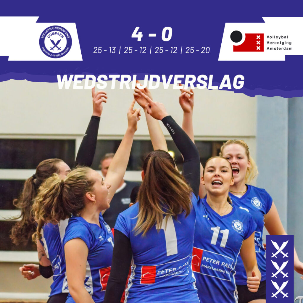 De dames van Compaen D1 zijn het seizoen uitstekend begonnen met een klinkende 4-0 overwinningop VVA. In een goedgevulde sporthal wisten de speelsters niet alleen het publiek te trakteren op snoep, maar ook op een heerlijke pot volleybal vol energie, enthousiasme en overtuiging.