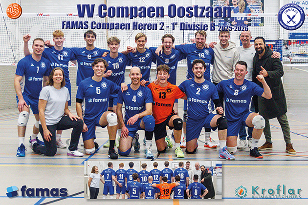 De herenlijn van volleybalvereniging Compaen heeft de wind momenteel stevig in de zeilen. Het eerste team staat tweede in de Topdivisie en het tweede en derde zijn nu koplopers in respectievelijk de Eerste divisie en Promotieklasse. Die laatste twee ontsnapten vorig seizoen nota bene nog aan degradatie in de beslissingswedstrijden.