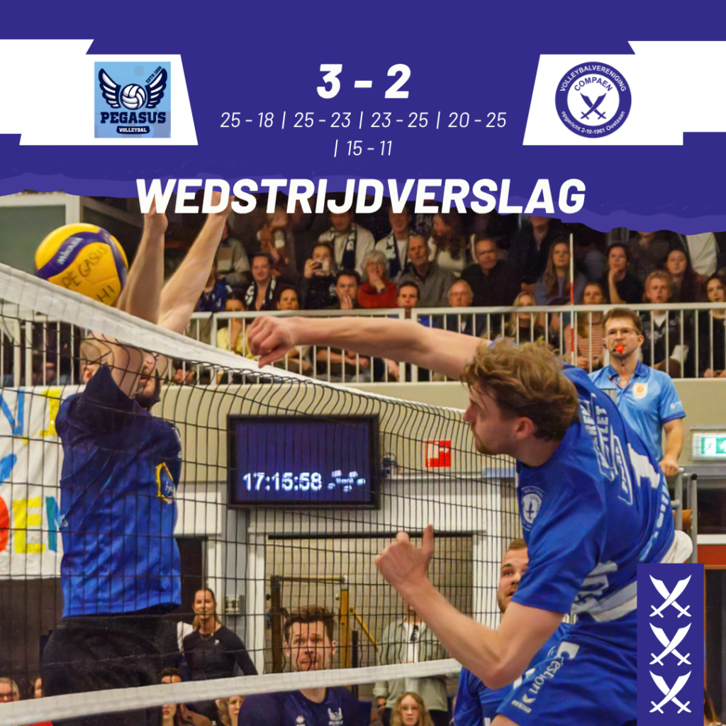 De focus was ook in de vierde set nog niet terug bij Pegasus. Compaen bracht Bram Bekebrede en Luka van Duinen voor respectievelijk Timme van Houts en Jary Kroon. Na 9-9 waren de Oostzaners oppermachtig (20-25). Het massaal aangeheven ‘Allez les bleus’ door het thuispubliek klonk de Zaanse blauwhemden in die fase als muziek in de oren.