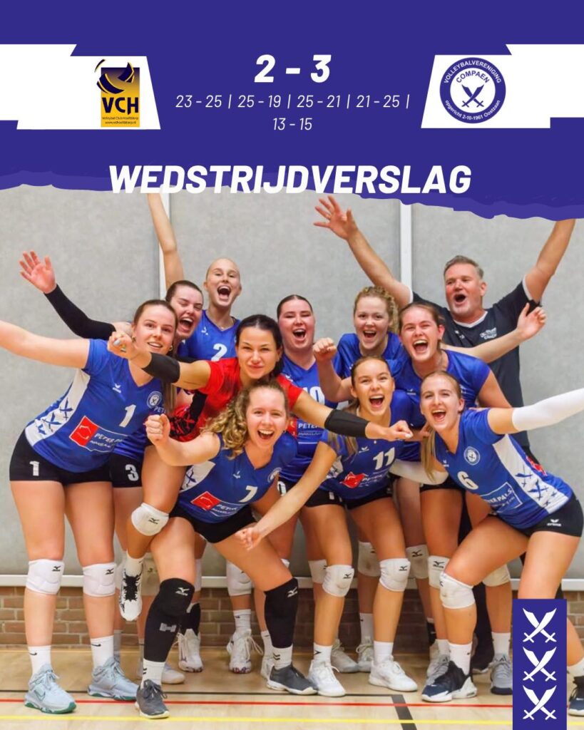 Zaterdag 8 november 2025 stond voor dames 1 de wedstrijd tegen VCH op de planning. Na wat twijfels of de autobanden wel hard genoeg waren, durfden we het erop te wagen en vertrokken we richting Hoofddorp. Aangekomen in de ietwat muffe, donkere en drukke zaal kon de wedstrijd beginnen.
